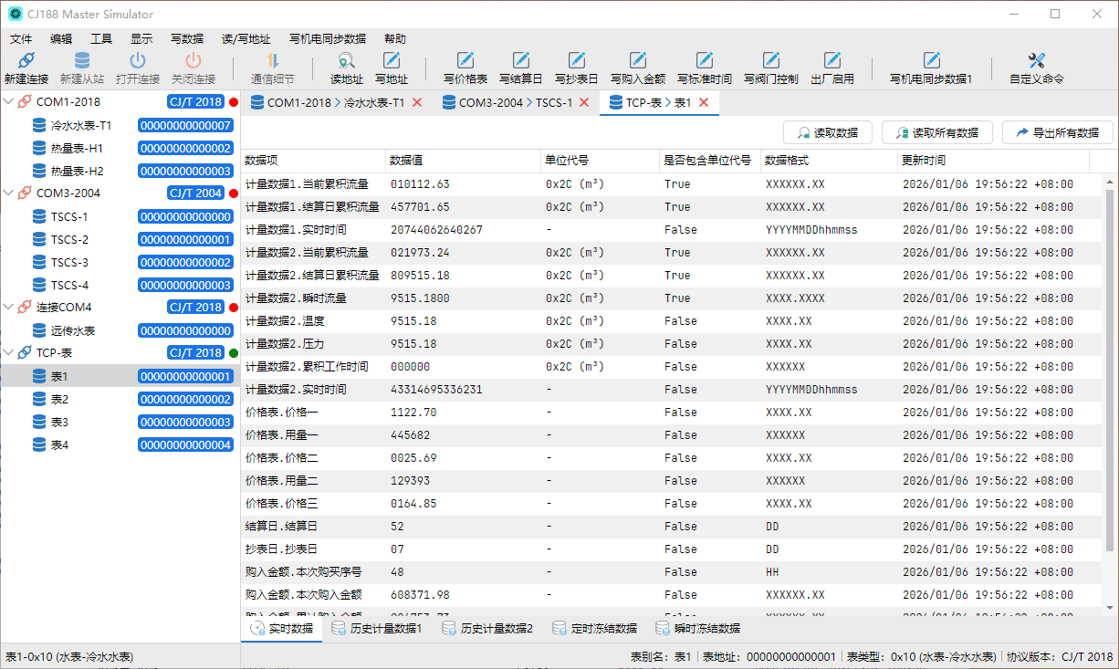 CJ/T188 主站模拟器——操作智能水表、燃气表、热量表的理想测试工具,支持 CJ/T188-2004/2018 协议。