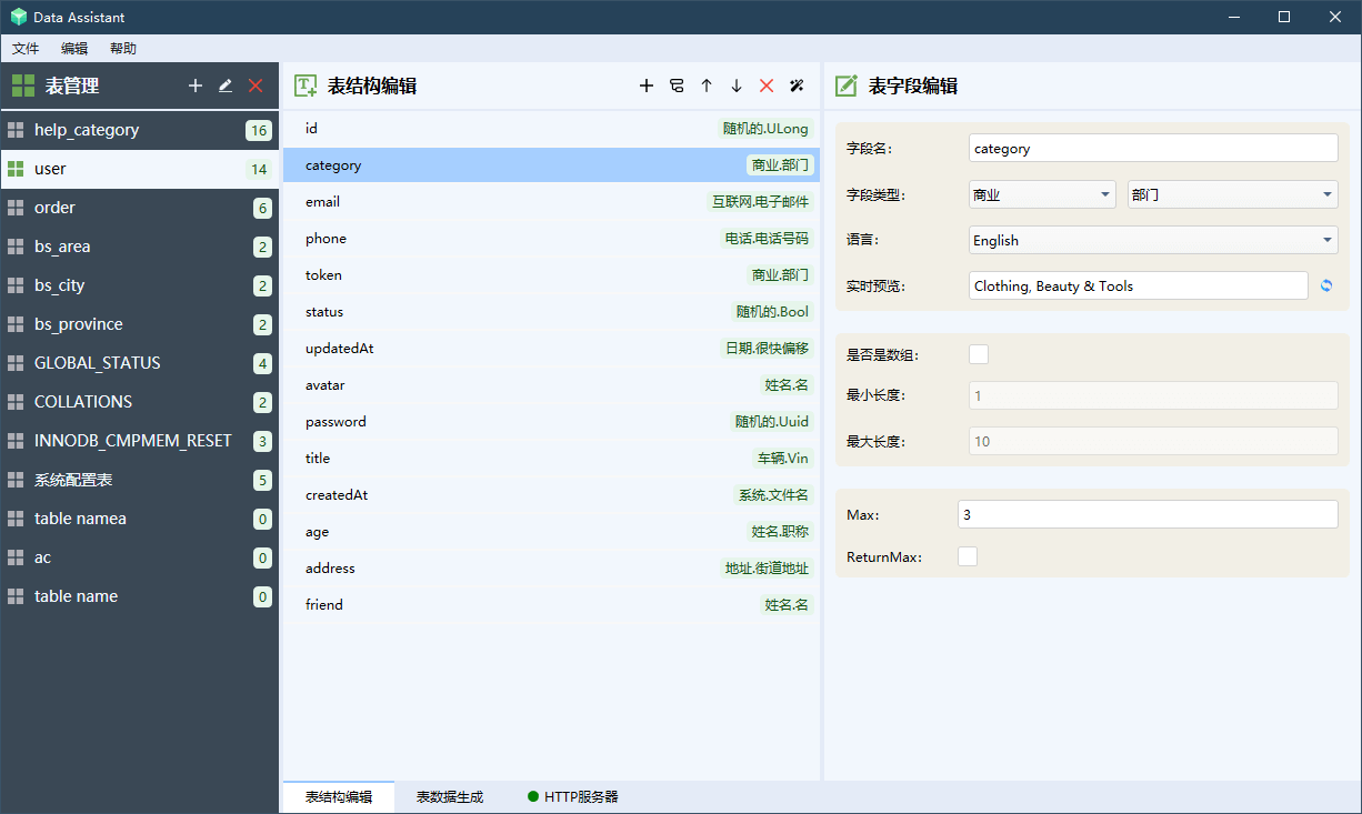 - 系统:文件名、目录路径、文件路径、通用文件名、Mime类型、通用文件类型、通用文件扩展、文件类型、文件扩展名、Semver、版本、异常、安卓ID、苹果推送令牌、黑莓Pin。