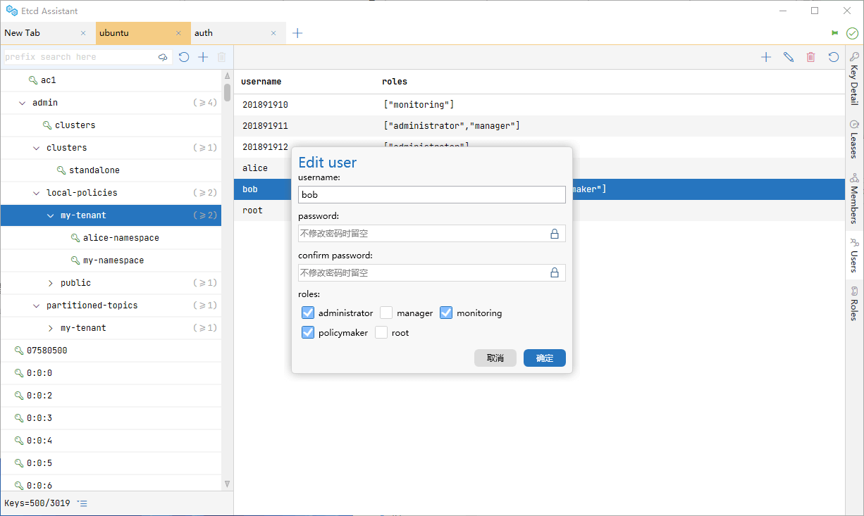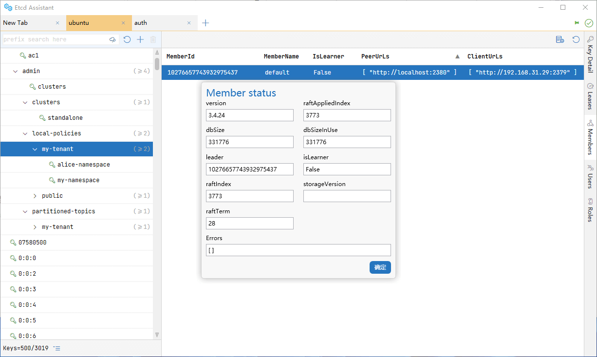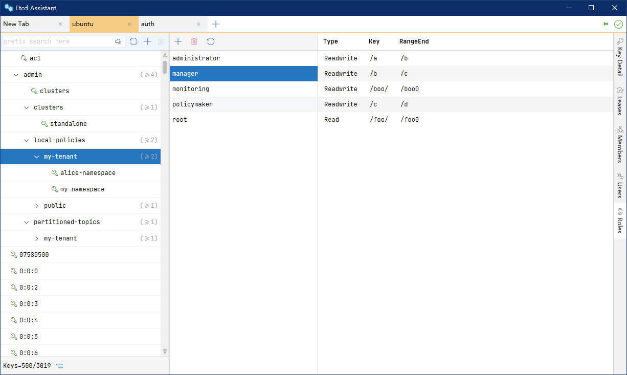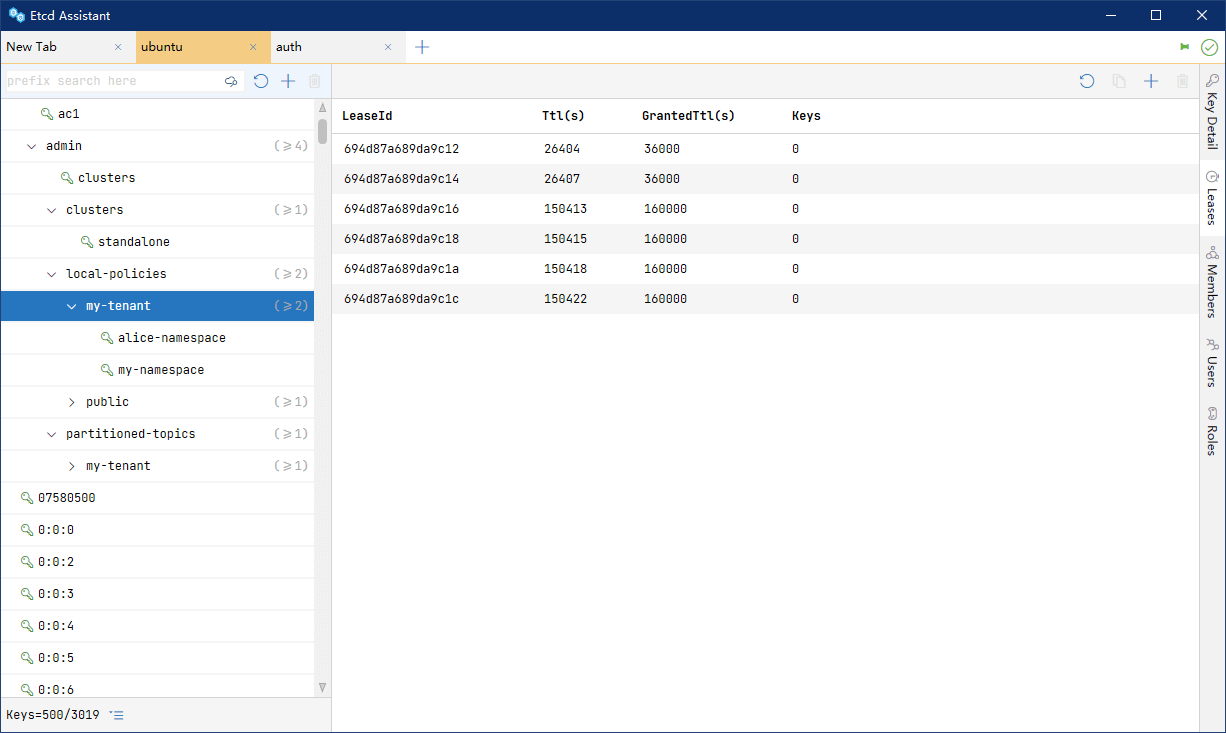 Etcd Assistant——便捷高效地操作您的 etcd 集群;支持多种键的视图;管理租约、用户、角色和权限。