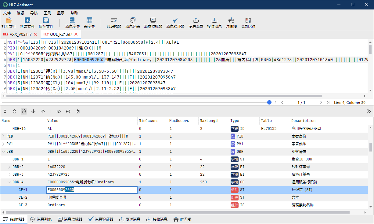- 自动识别 HL7 消息、段、字段、组件和子组件