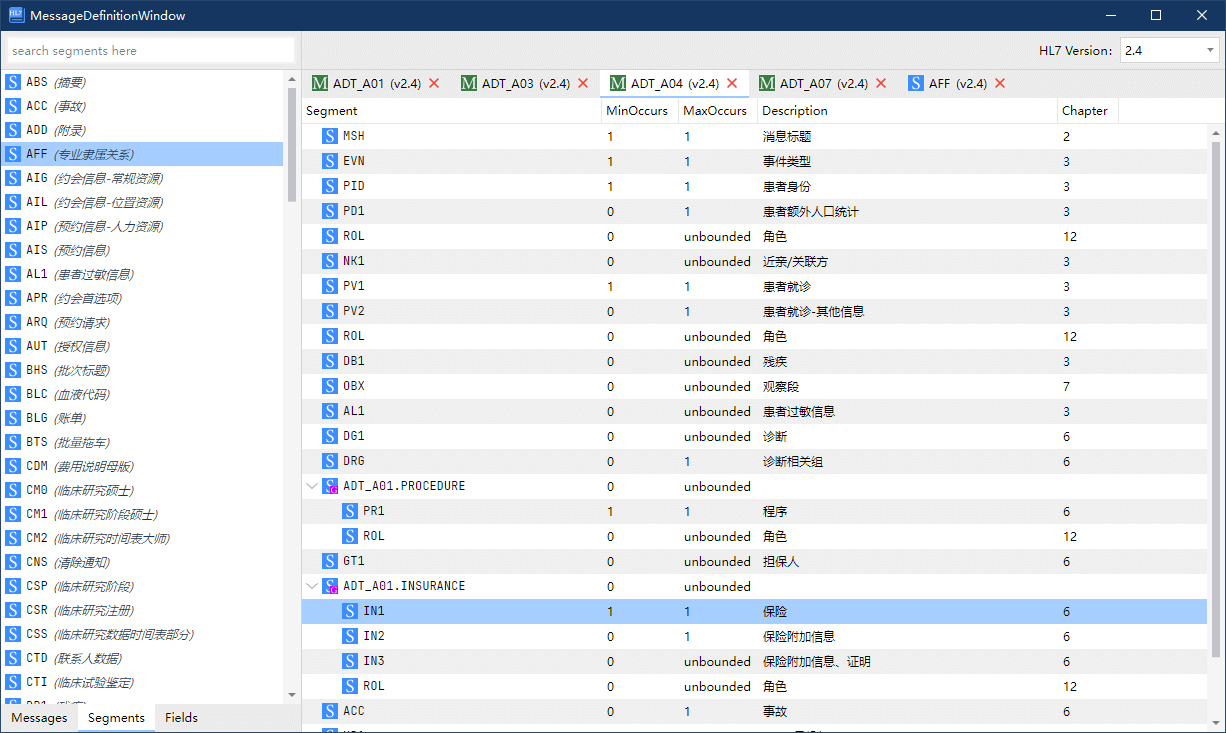 HL7 Assistant 提供所有版本的完整消息定义和HL7表格文档,为快速查询提供便利。