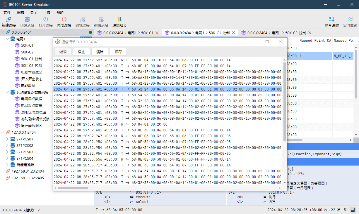 IEC104 主站/客户端模拟器——完整支持IEC104规约,同时创建多个连接,监控多个从站,快速调试您的从站设备。