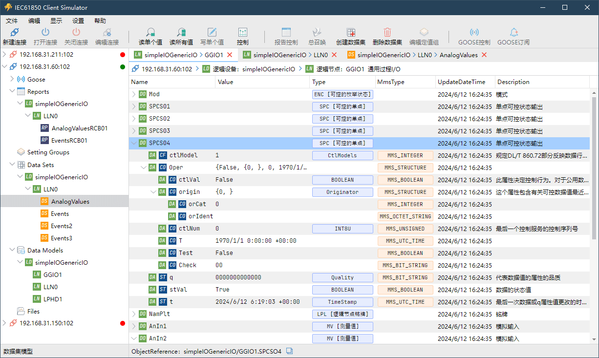 IEC61850 客户端模拟器——操作 IEC 61850 装置的理想工具,执行多种实用功能,支持 IEC 61850 第 1 版和第 2 版。