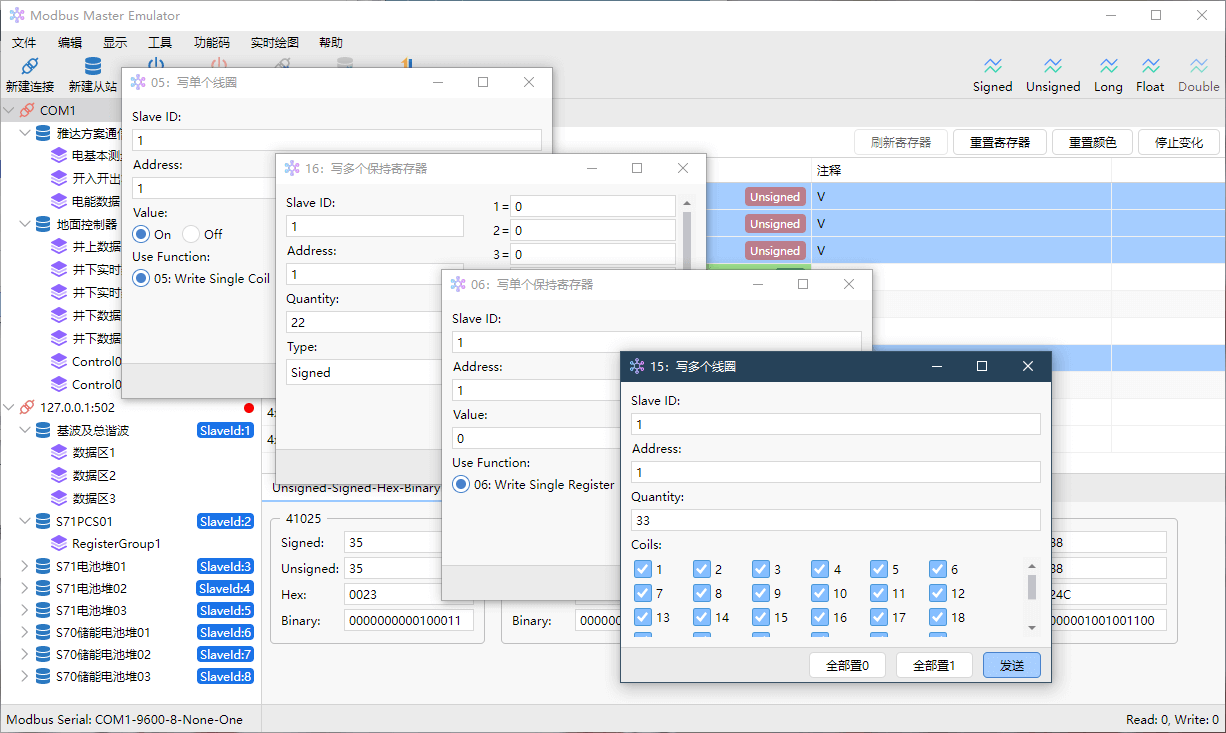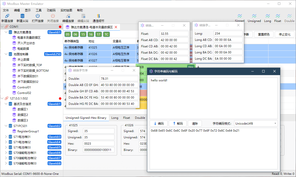 Modbus 主站模拟器——同时创建多个连接,监控多个Modbus从站寄存器,快速调试您的从站设备。