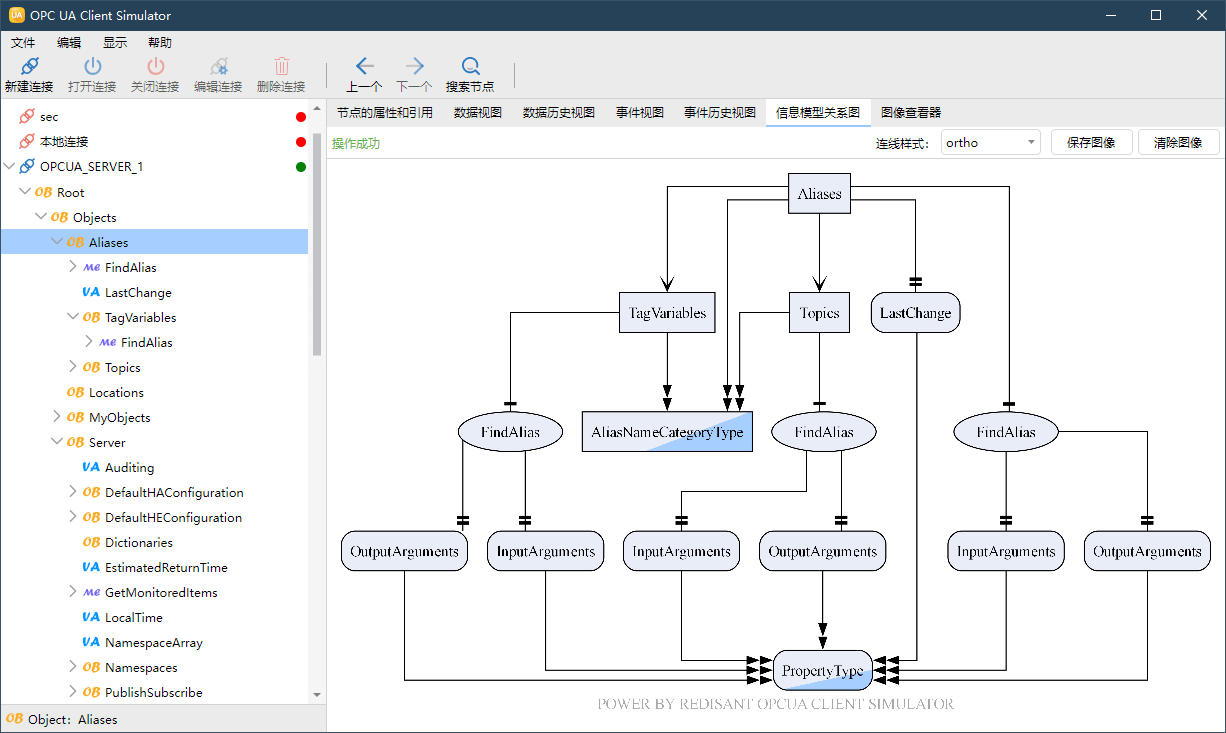 - 使用 OPC UA 定义的图形符号可视化数据模型关系,支持导出各种图像格式