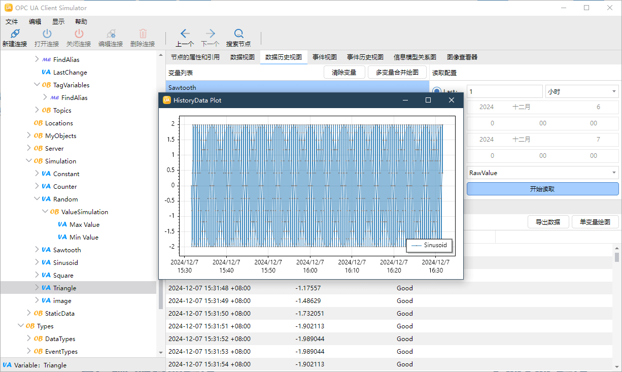 OPCUA 客户端模拟器——连接任何 OPC UA 服务器;浏览地址空间、读取和写入数据以及调用方法;监控数据变化和事件以及历史记录,生成信息模型。